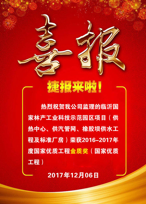 热烈祝贺我公司荣获国家优质工程金奖(国家优质工程)