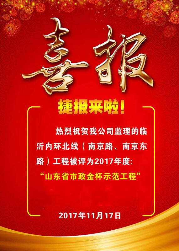 热烈祝贺我公司荣获山东省市政金杯奖