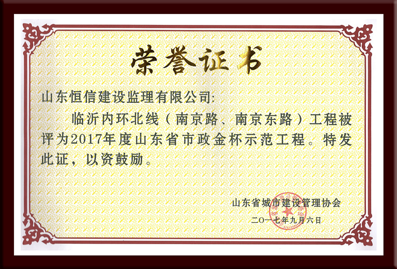 热烈祝贺山东恒信建设监理公司荣获优秀监理企业