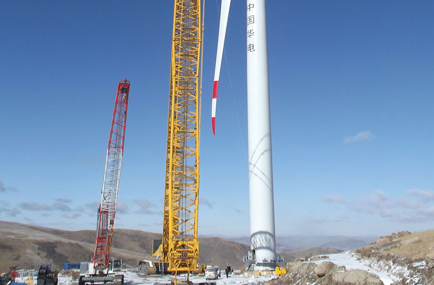 本工程为太重5MW试验风机1台,属于板筏式扩展基础,基础采用天然地基。风机轮毂高度为95米,单片叶片长度为62米。选用太原重工生产的TZ5000/128型号风机,风机配备一台箱式变压器,风机电缆由内蒙古辉腾锡勒华电风电场48#风机终端塔连接电网。
